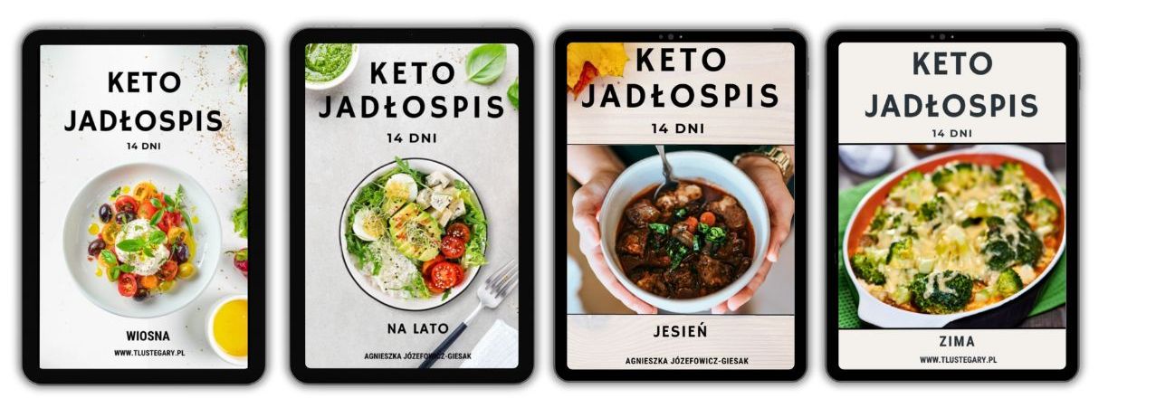 4 jadłospisy sezonowe (KETO lub LOW CARB do wyboru)– wiosna, lato, jesień, zima– z listą zakupów i przepisami.